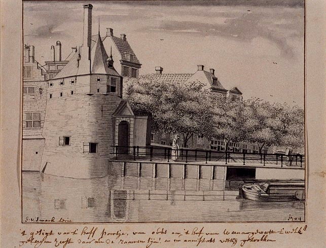 G. van Smack; Datering: 1704 Techniek: potlood. Grappig is dat je links de trapgevel