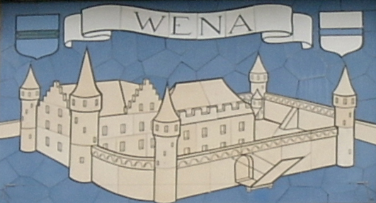 hoger. Het bijschrift "Slot Weena 1496" bevat een kleine