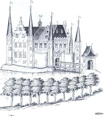 gevel bij getekend. Als je kijkt naar de ramen boven het poortje en de ramen links