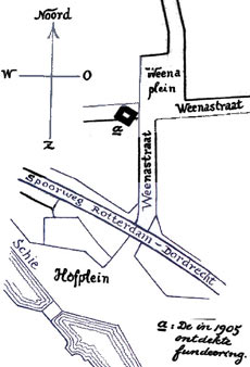 werden gevonden bij de oude Katshoek en in 1905 zware funderingen werden aangetroffen bij de bouw van het Station Hofplein