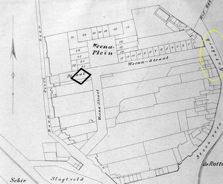 deze lag in een tuin tussen de Schie en Raampoortlaan. Dat moet dan dus ten westen