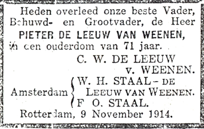Pieter de Leeuw van Weenen, geboren te Amsterdam op 26 mei 1843,