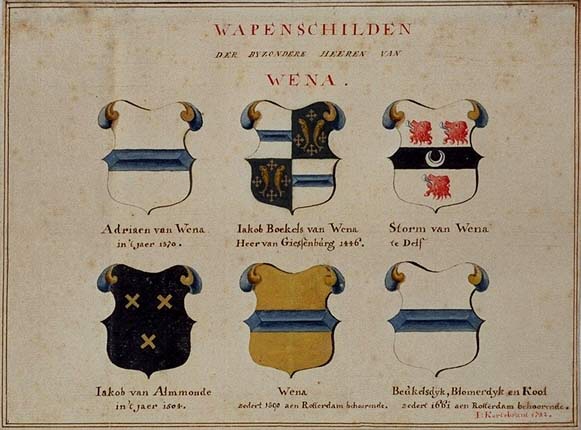 Bron: CBG, GHS 50A22, Naamen en Wapens der Edel en Agtbaare Heeren Veertig Raaden der stad Delft (1477-1772), blz. 18. Storm van Wena).